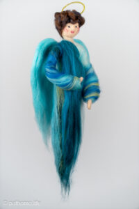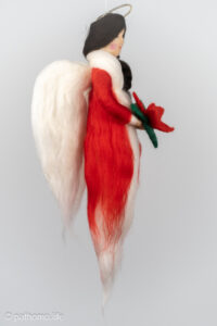 Our angels are crafted from natural merino wool sourced from certified farms in Europe. The wool is a pure natural product and is not chemically treated. Its coloring meets the standards of the textile industry.